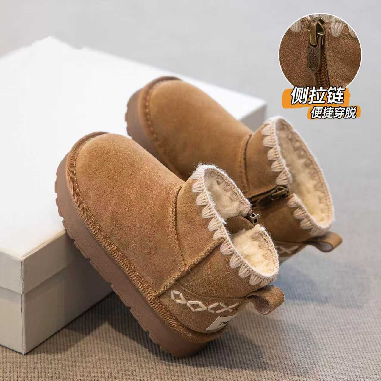 真皮儿童雪地靴女童鞋子新款冬季短男童靴子宝宝加绒加厚保暖棉鞋