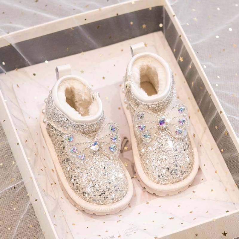 儿童雪地靴2025冬季新款女童雪地棉加绒加厚毛毛短靴宝宝二棉鞋潮