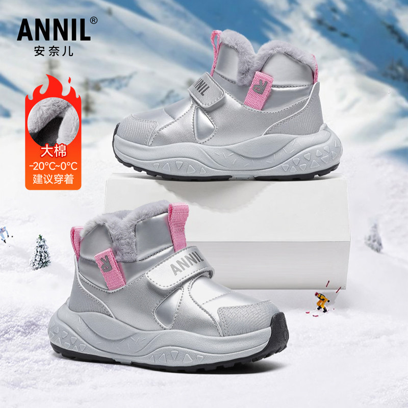 安奈儿宝宝雪地靴女童雪地棉2025新款冬季加绒加厚防水儿童大棉鞋