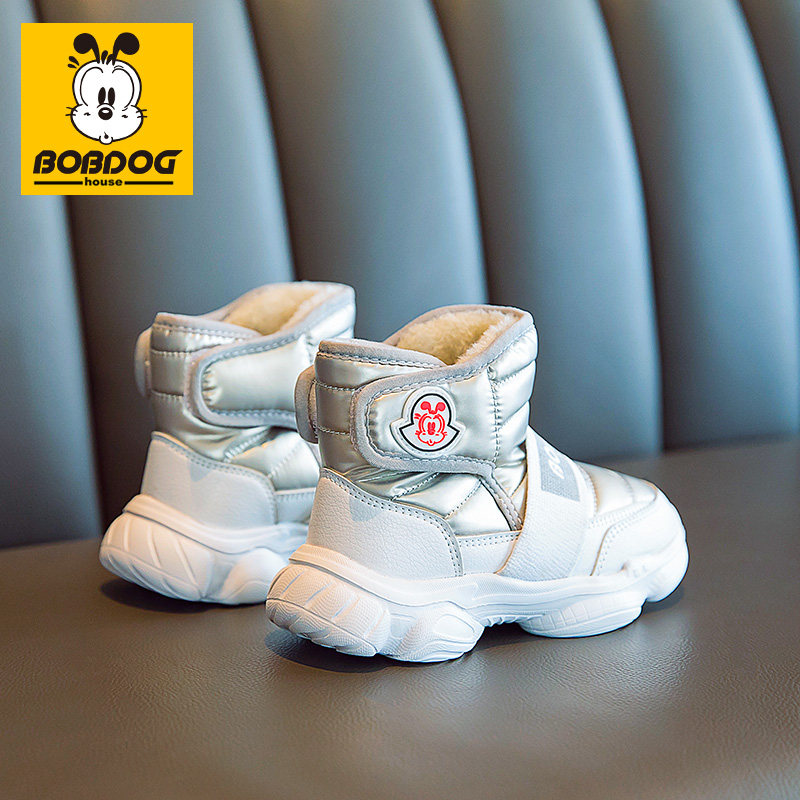 巴布豆儿童雪地靴男童冬季加绒加厚保暖防水防滑棉鞋女童雪地棉靴