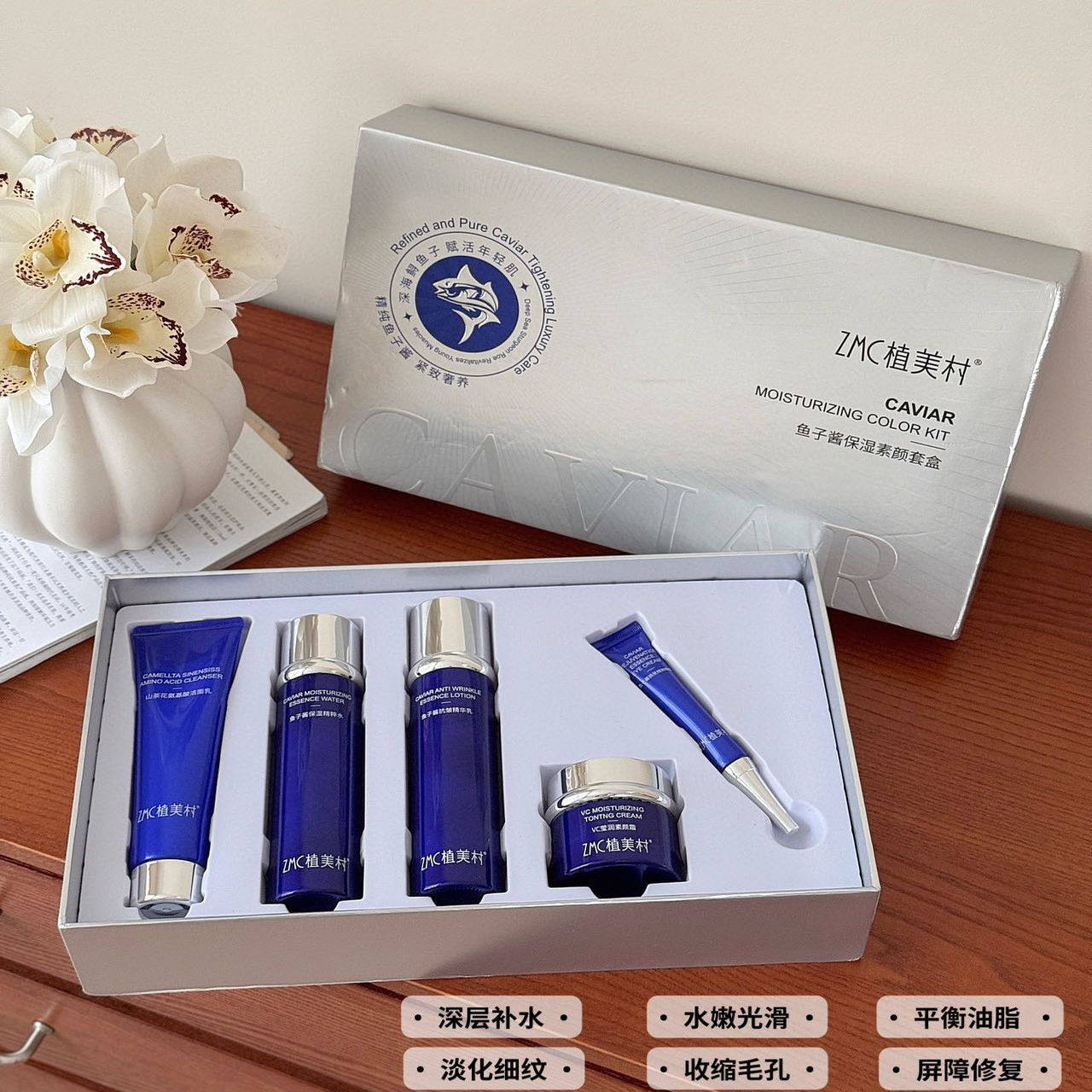 ZMC植美村鱼子酱保湿素颜套盒深层补水水嫩光滑收缩毛孔眼霜套装