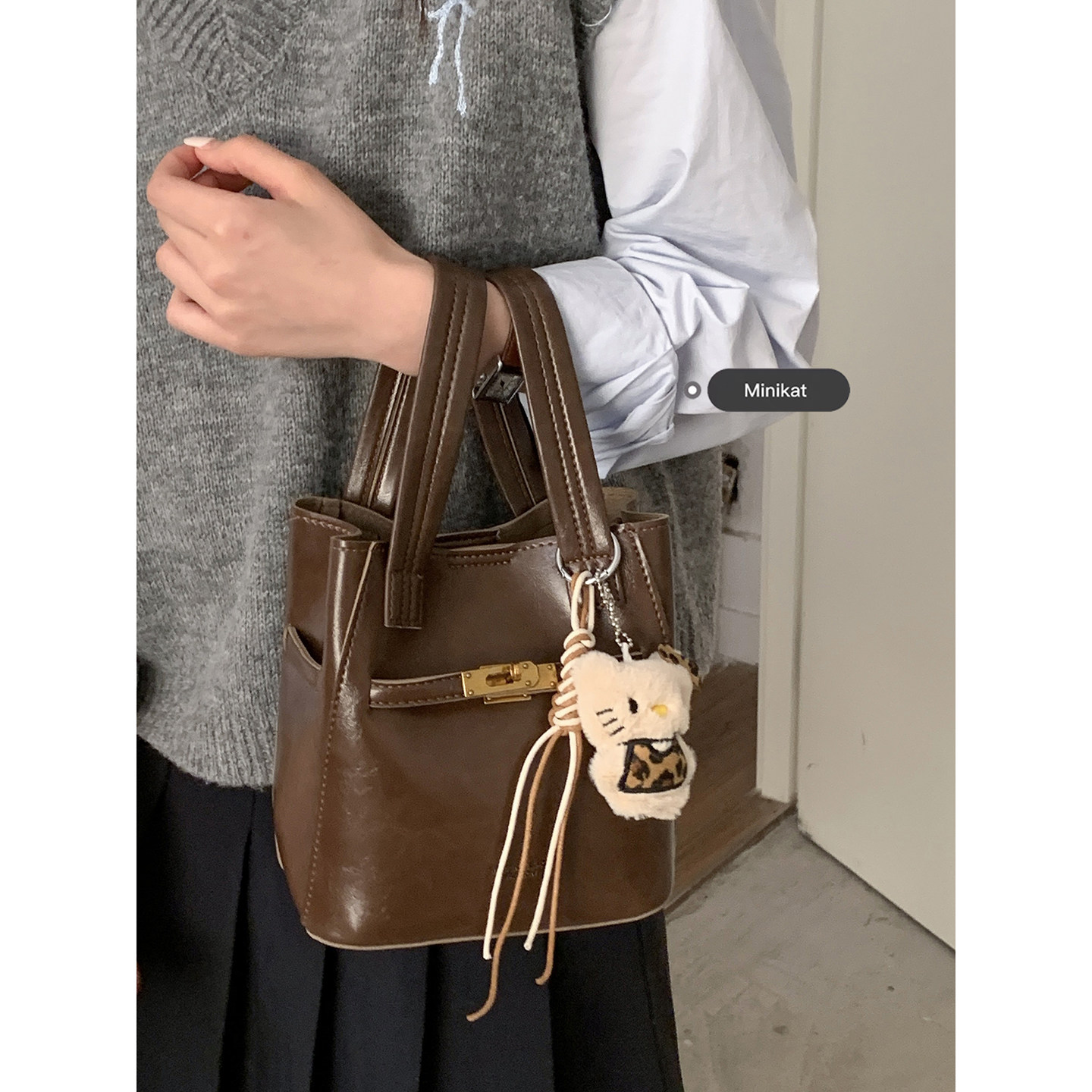 复古手提菜篮子包包女2025新款潮时尚韩版水桶包百搭单肩斜挎包