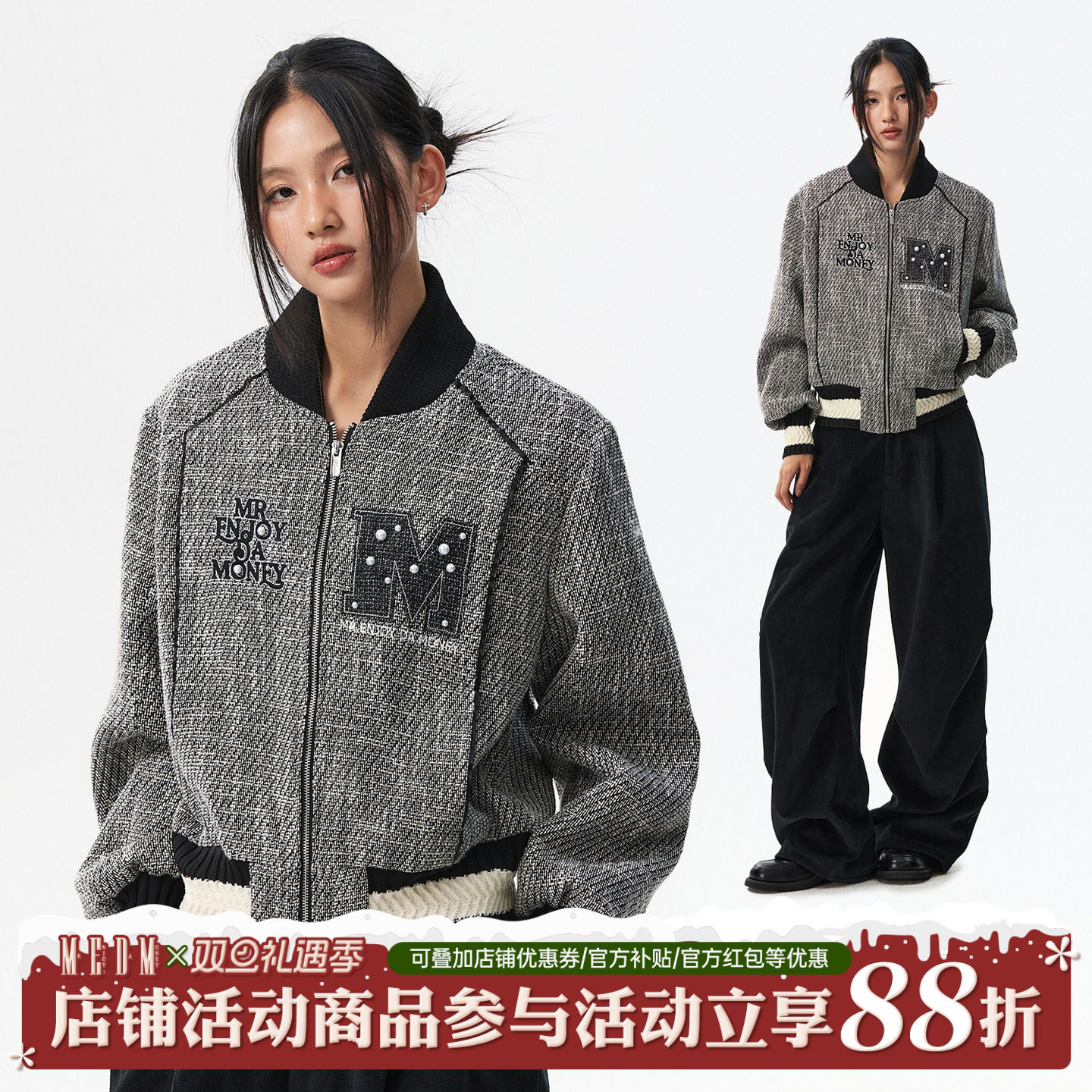 MEDM 小香风毛呢棒球领休闲立领夹克秋冬美式复古情侣款拉链外套
