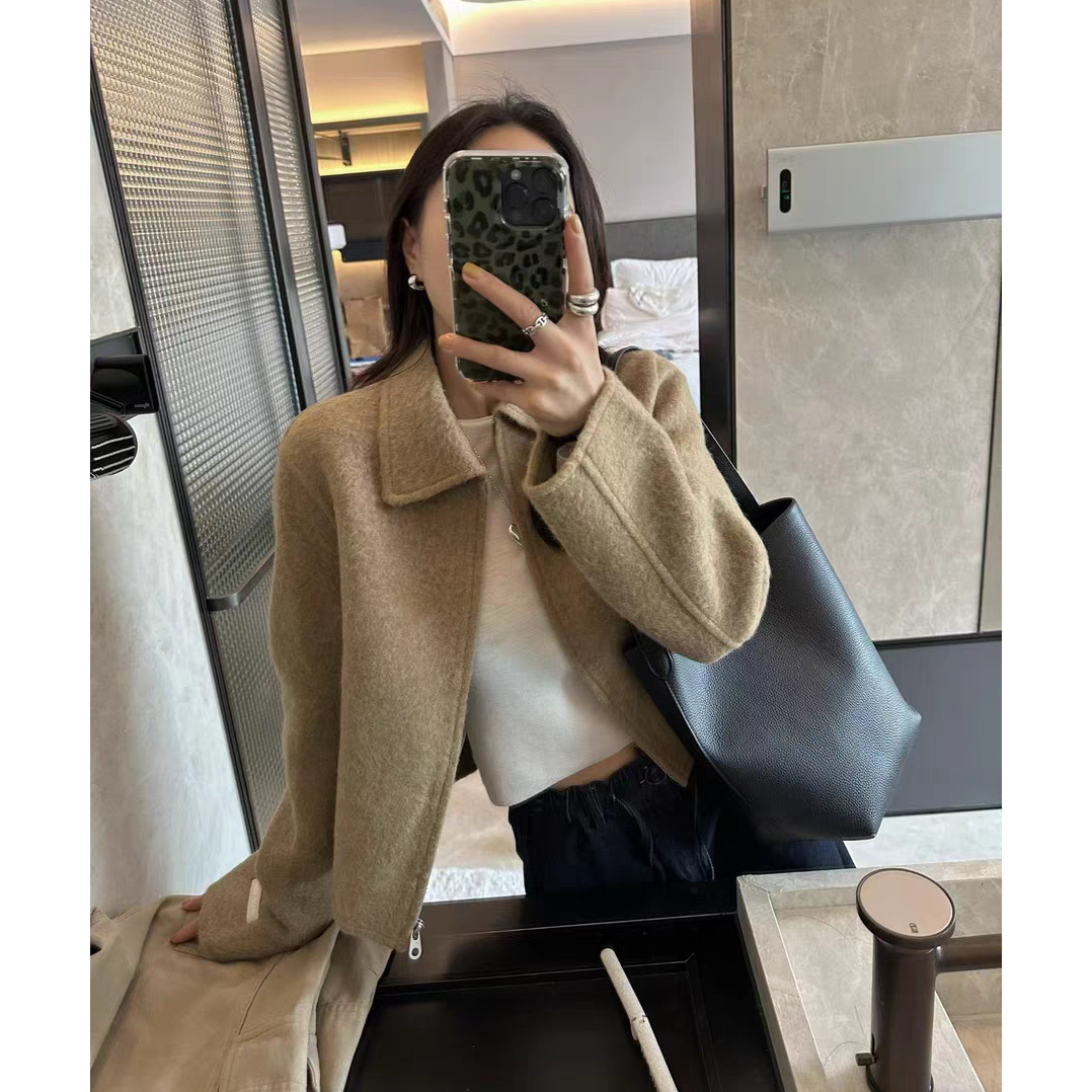 秒发!小短款浅棕色羊毛大衣韩国25冬新高级感翻领正肩拉链外套女