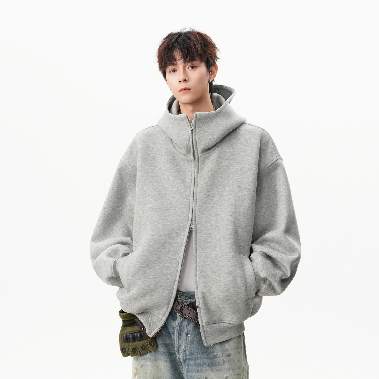丛林老虎纯色立领重磅加厚卫衣男女秋冬休闲宽松运动衫半拉链外套