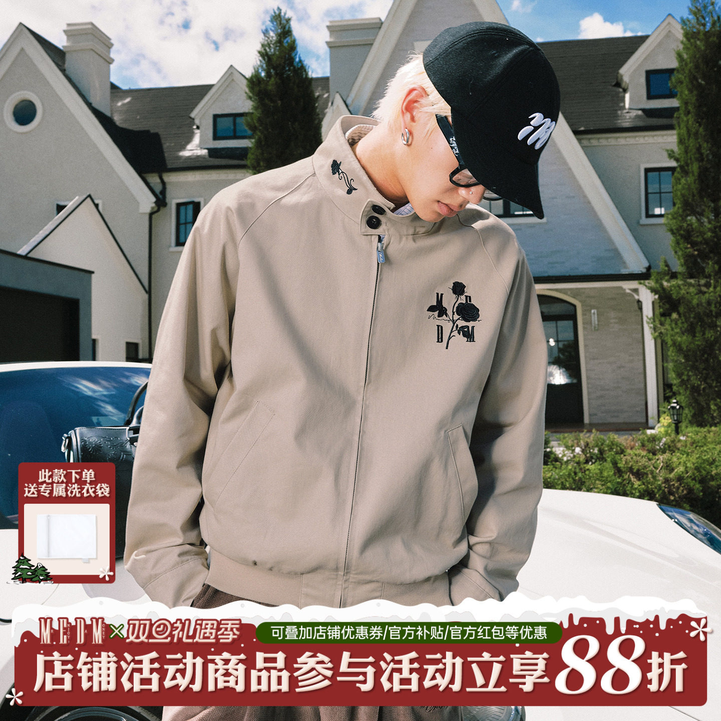 MEDM 黑白玫瑰花哈灵顿高领休闲夹克秋季潮牌帅气宽松拉链外套男