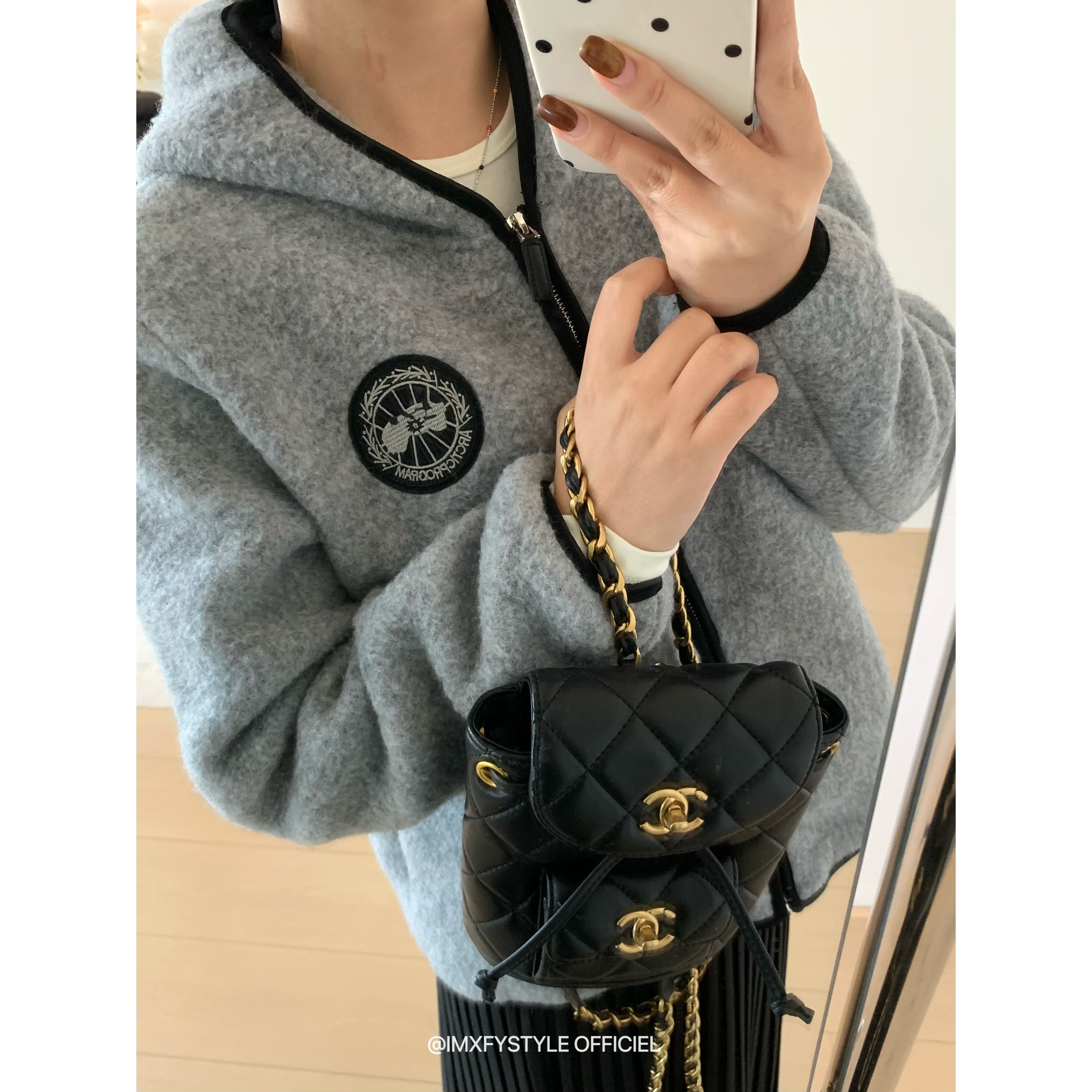 MEDM 钉珠贴皮马海毛保暖休闲连帽夹克慵懒风男女宽松拉链外套冬