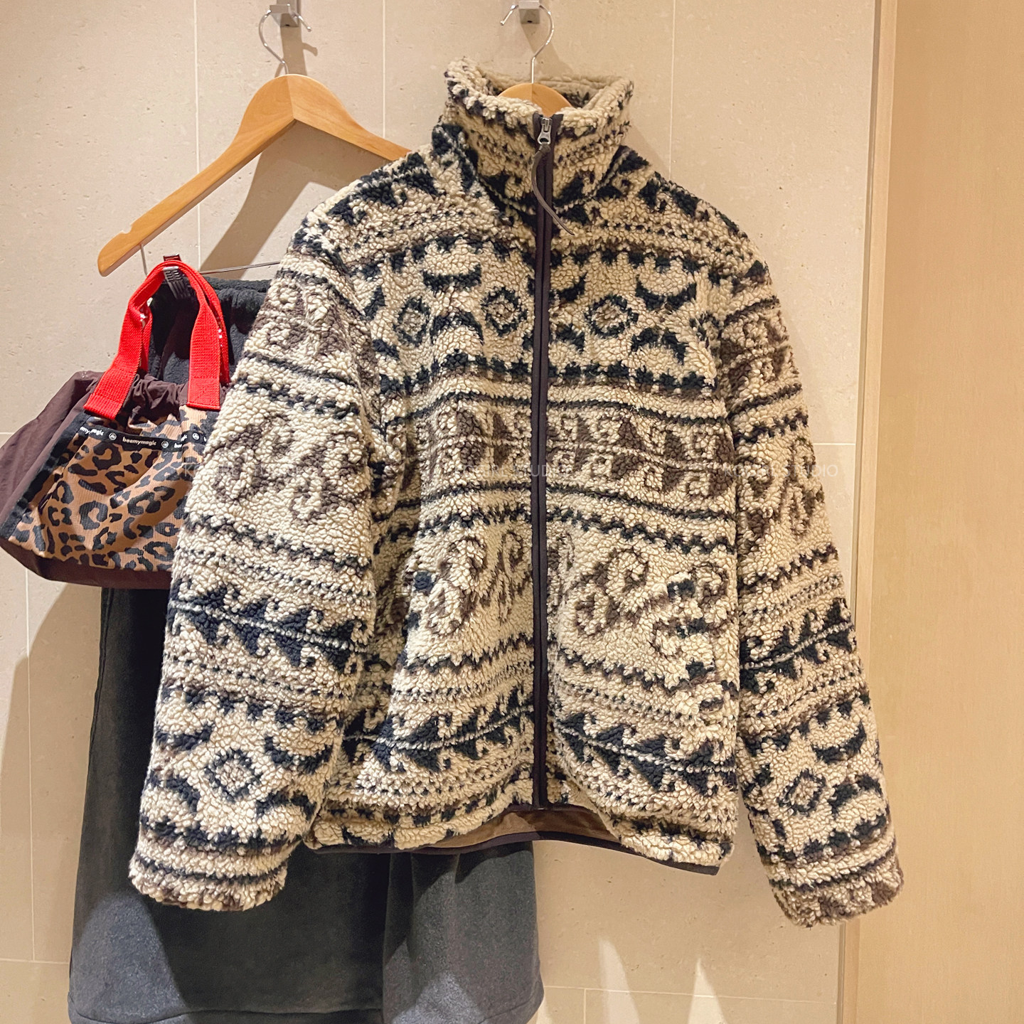 KOGIRL冬季羊羔毛加厚费尔岛提花立领宽松抽绳保暖摇粒绒拉链外套