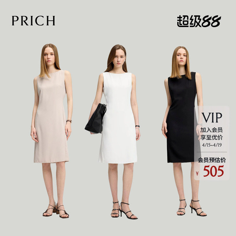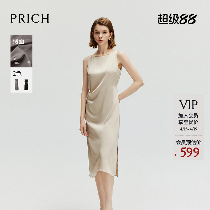 【流光缎面裙】PRICH一字领无袖连衣裙2026夏季新款褶皱收腰长裙