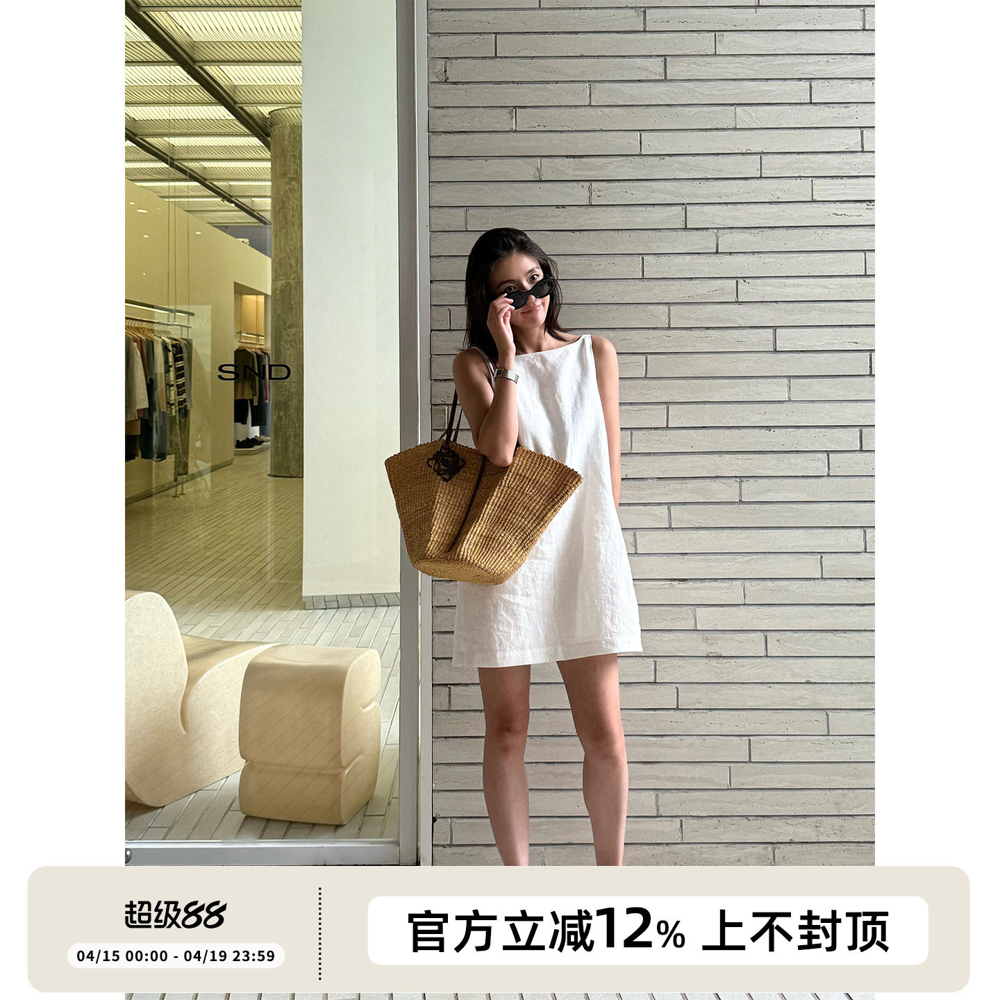 SOTHEA 法式一字领亚麻2026年夏季无袖露背高腰宽松休闲小A连衣裙