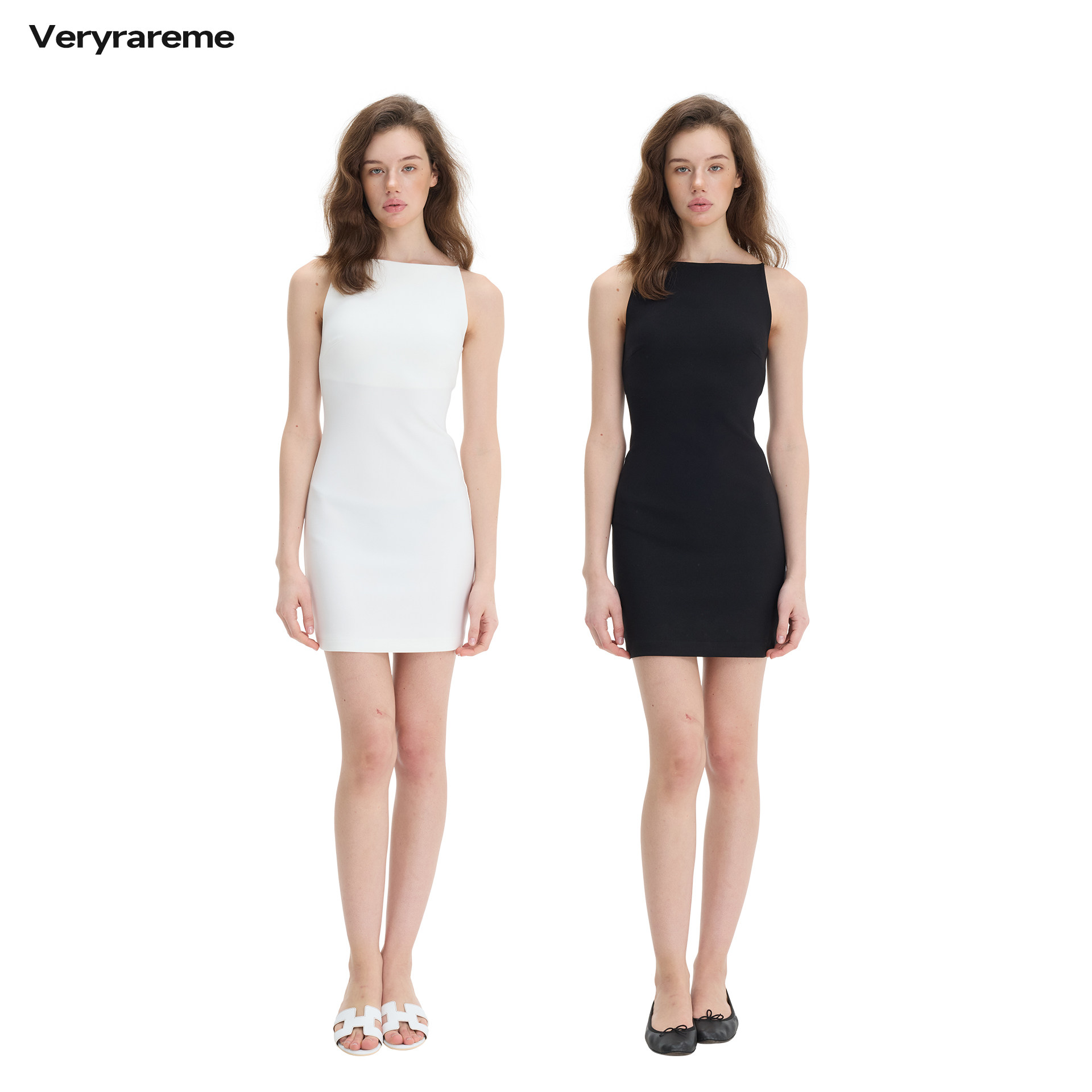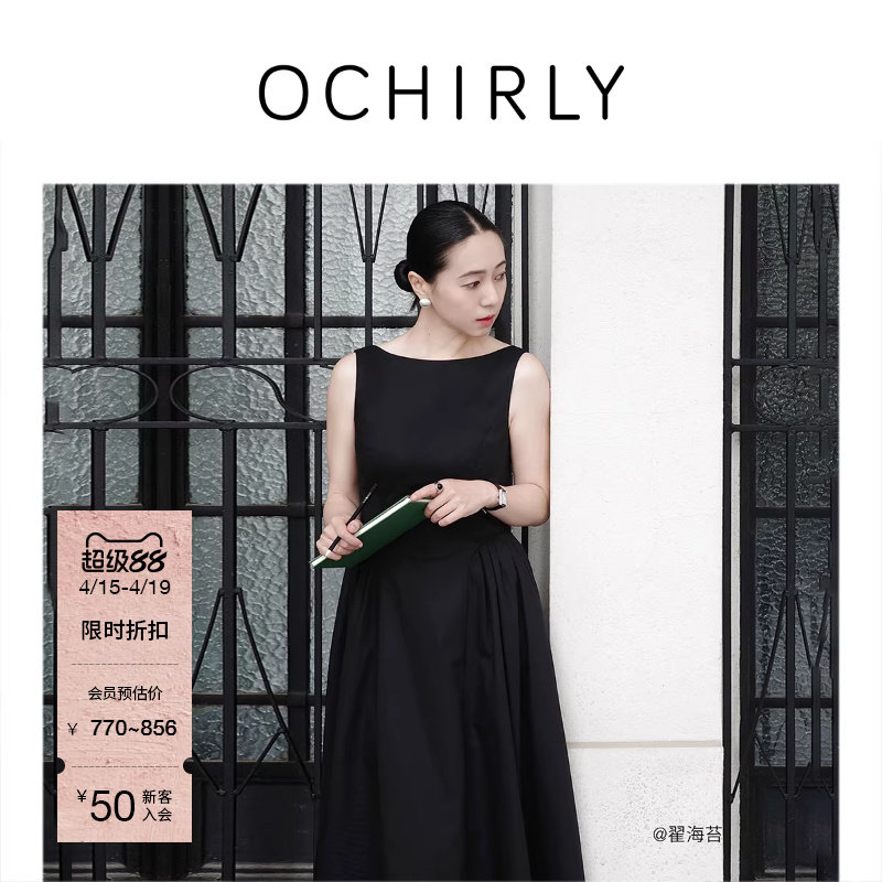 OCHIRLY欧时力 一字领露背A字无袖连衣裙裙子感高级夏季