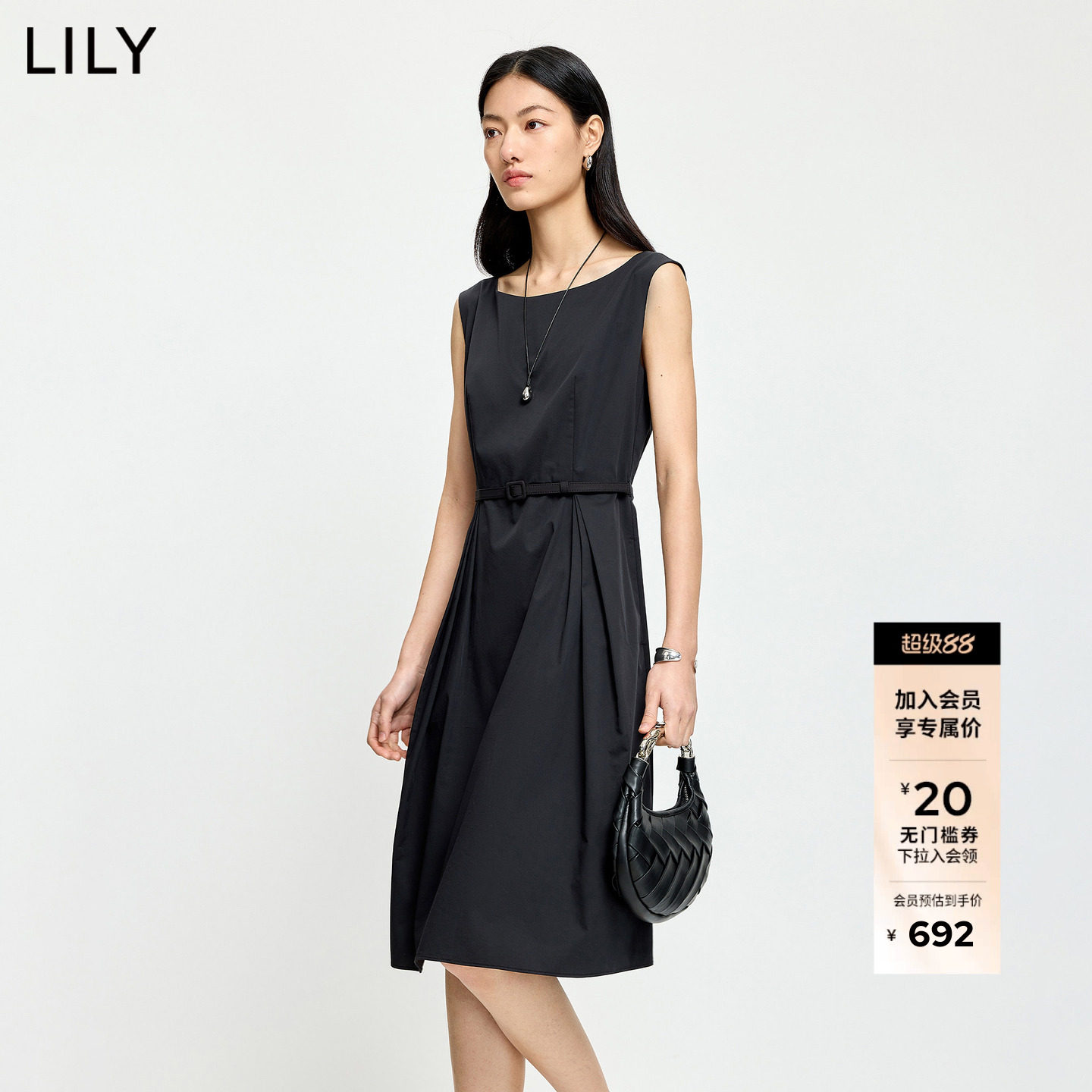 LILY2026夏新款复古赫本风收腰无袖一字领气质通勤小黑裙连衣裙女