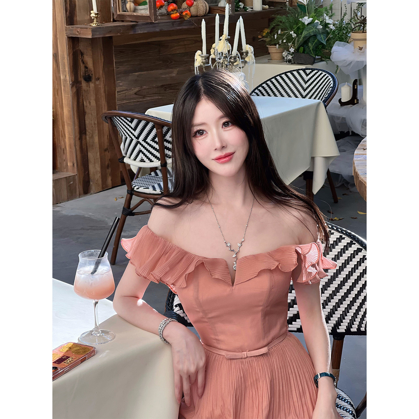 DAC【桃夭】原创温柔纯色一字领收腰显瘦连衣裙长裙2025夏季新款
