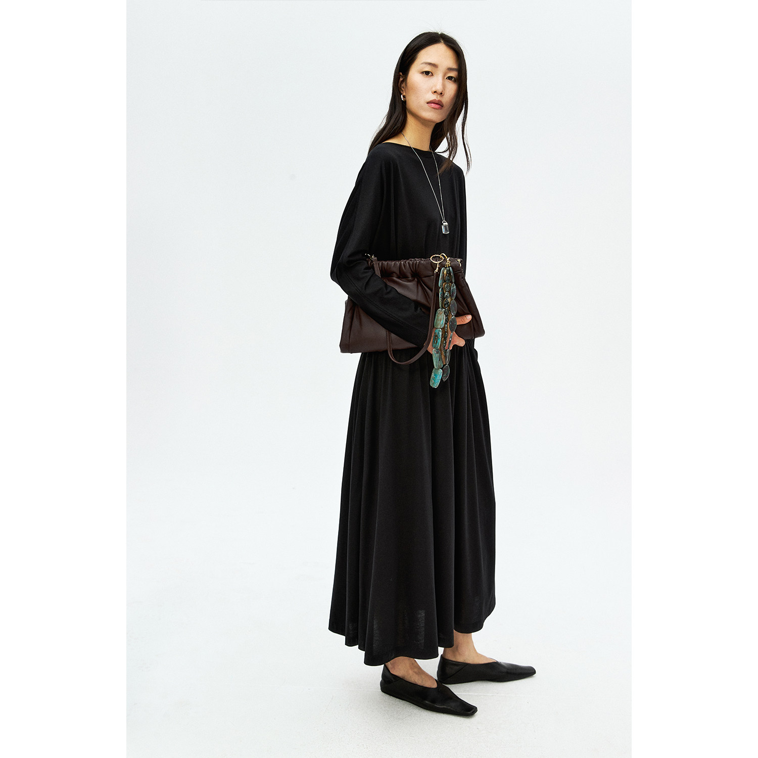 LESS春季一字领连衣裙女铜氨环保垂感气质显瘦长袖裙子2P2G20740