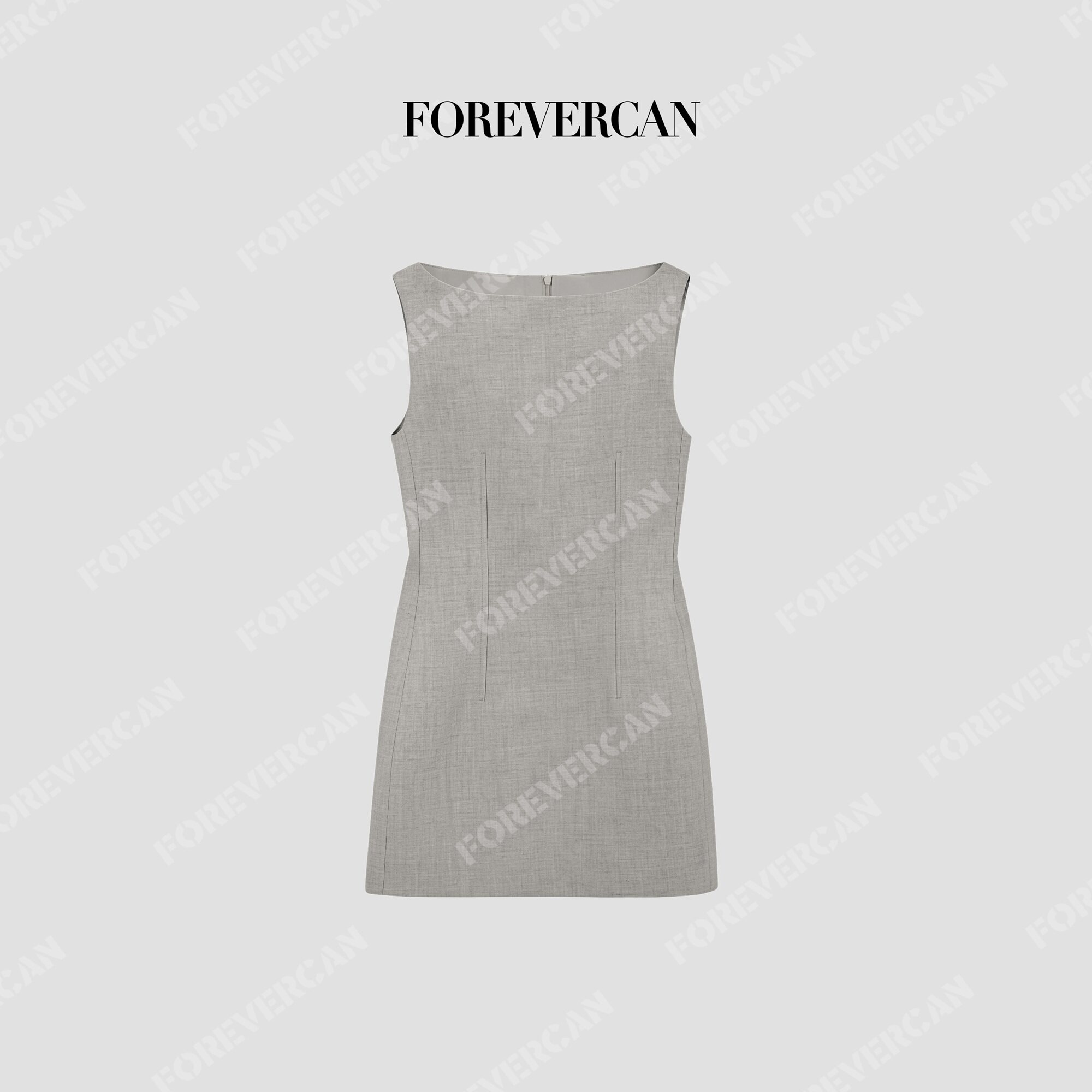 Forevercan女装2026新款葛瑞丝立裁一字领川字鱼骨线收腰连衣裙