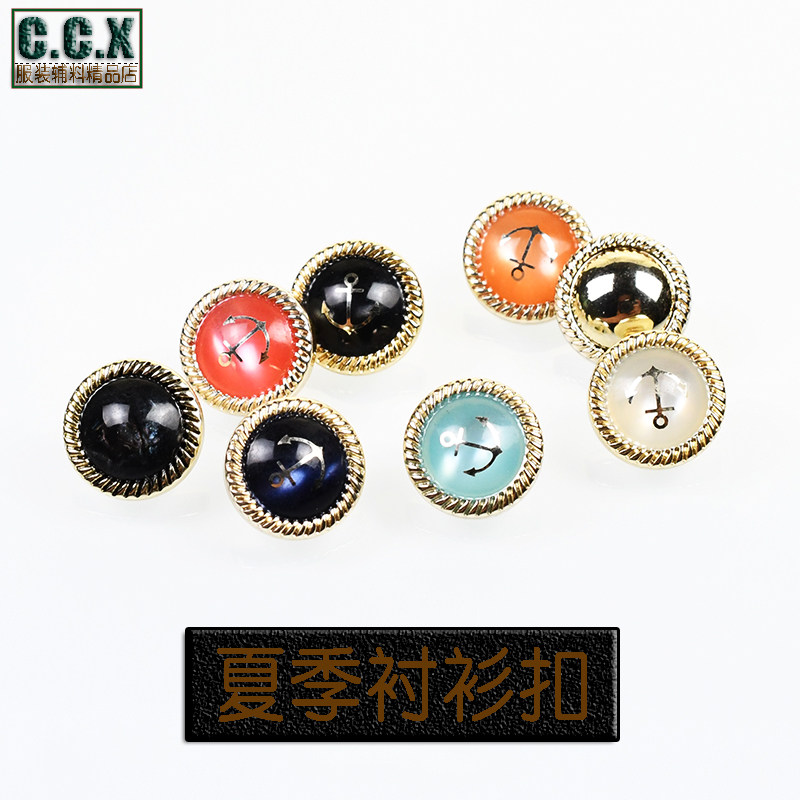 高档船锚衬衫开衫纽扣男女百搭黑色白色雪纺衬衣连衣裙装饰小扣子