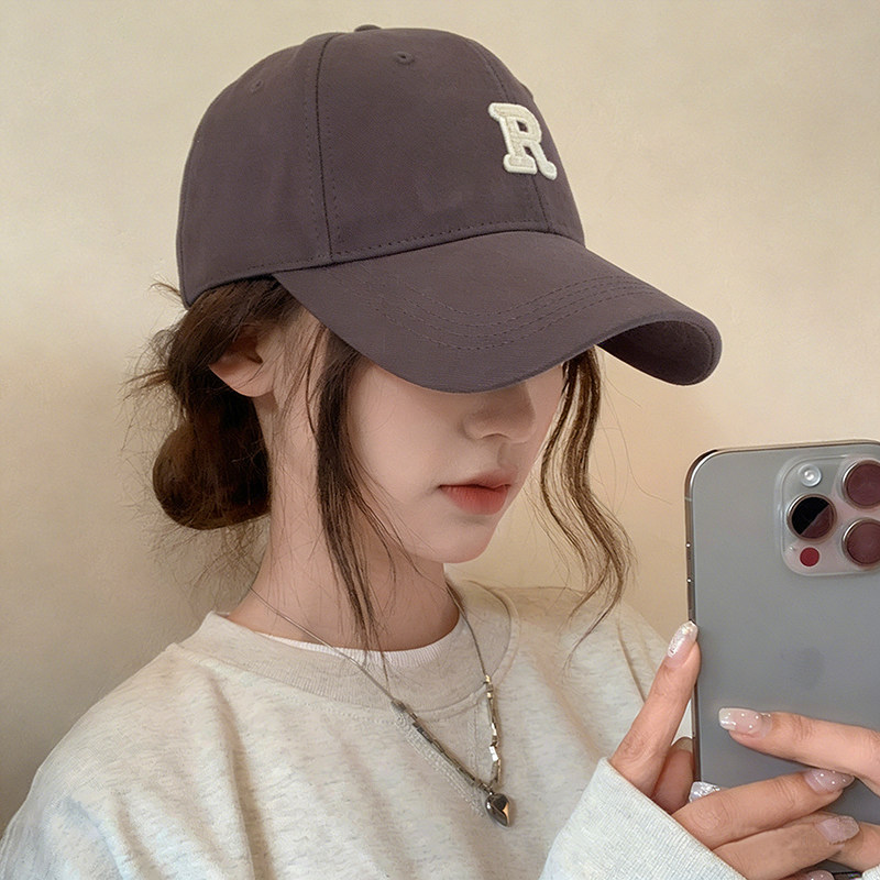 R标咖啡色棒球帽女大头围显瘦显脸小百搭运动帽子男韩版鸭舌帽潮