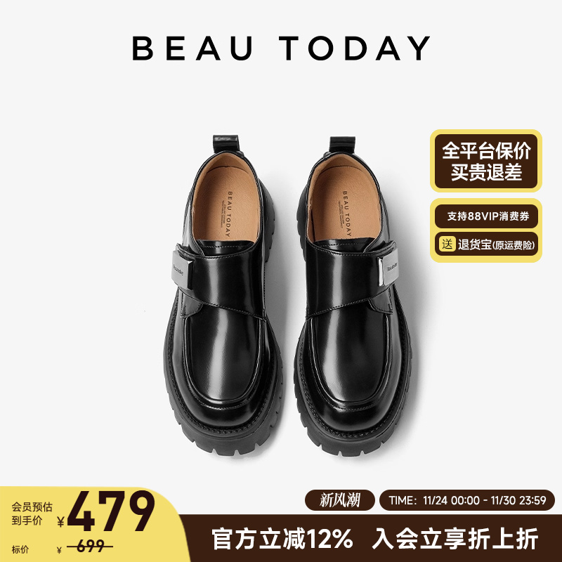 BeauToday黑色乐福鞋女2025新款真皮轻量英伦风小皮鞋厚底单鞋子