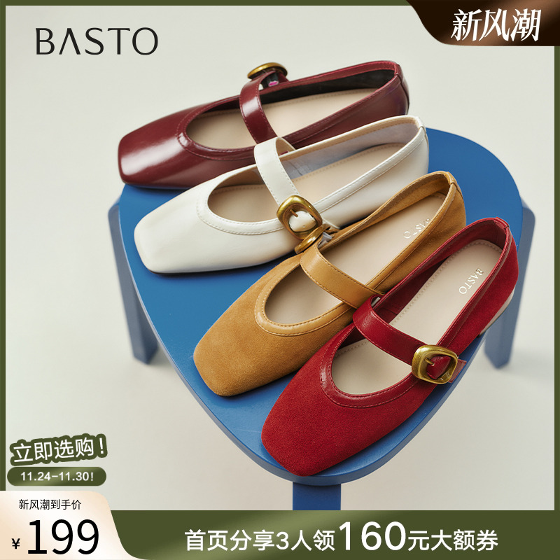 百思图2025秋新款法式真皮红色玛丽珍鞋小皮鞋女浅口单鞋B1576CQ5