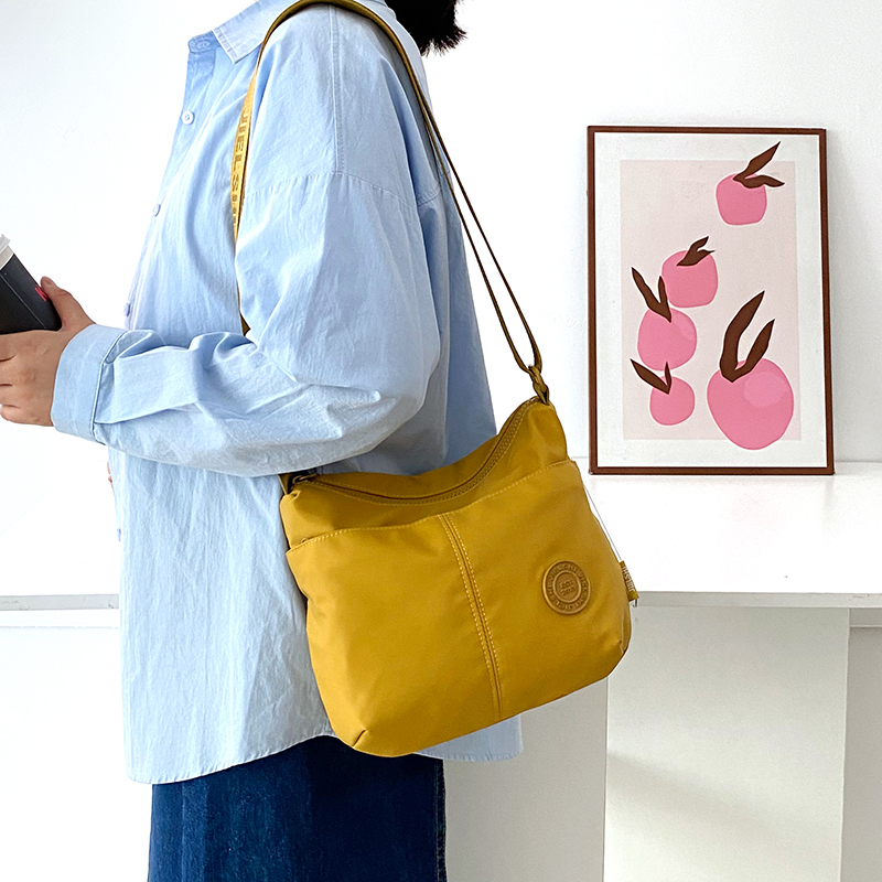 日系休闲轻便单肩斜挎帆布包女防水通勤胸包潮纯色百搭尼龙饺子包
