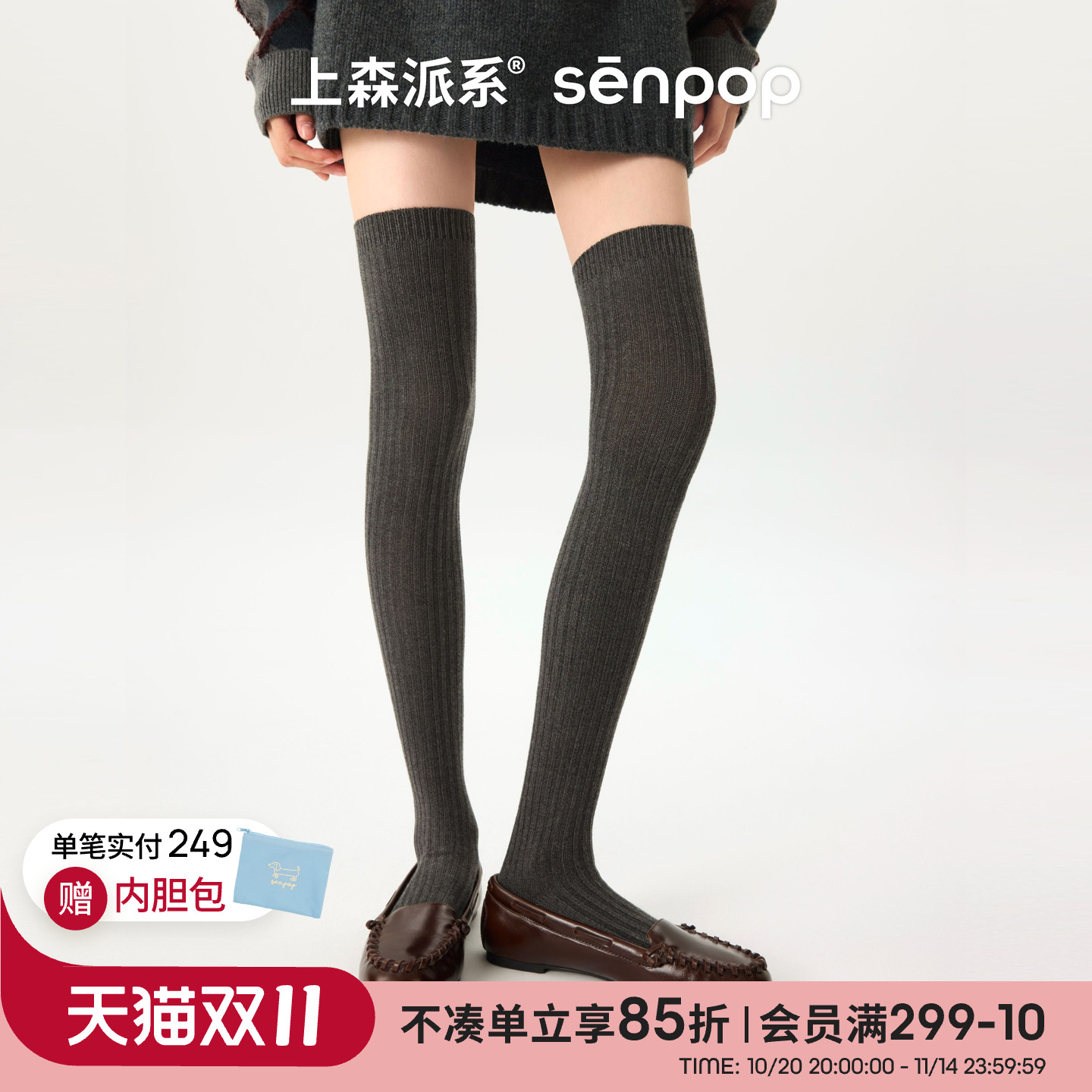 上森羊毛过膝袜高筒女袜秋冬小皮鞋堆堆袜灰色袜子显瘦护腿小腿袜