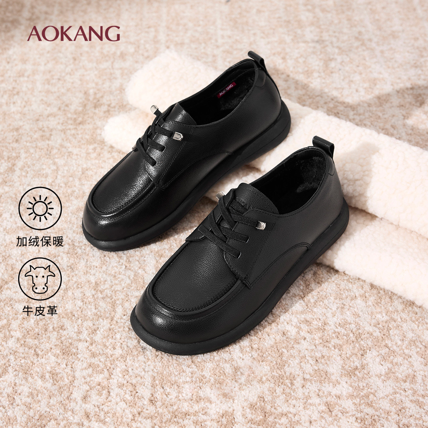 奥康 女鞋2025秋冬小皮鞋女皮复古英伦风舒适系带百搭一脚蹬单鞋
