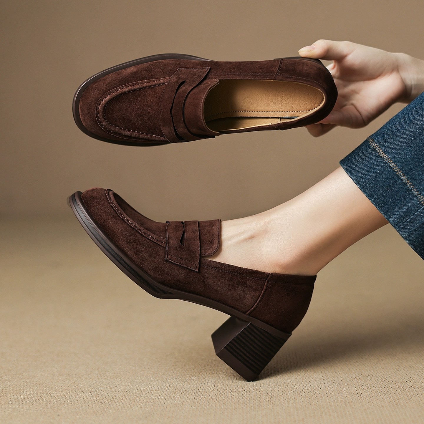 - 绒面中跟单鞋