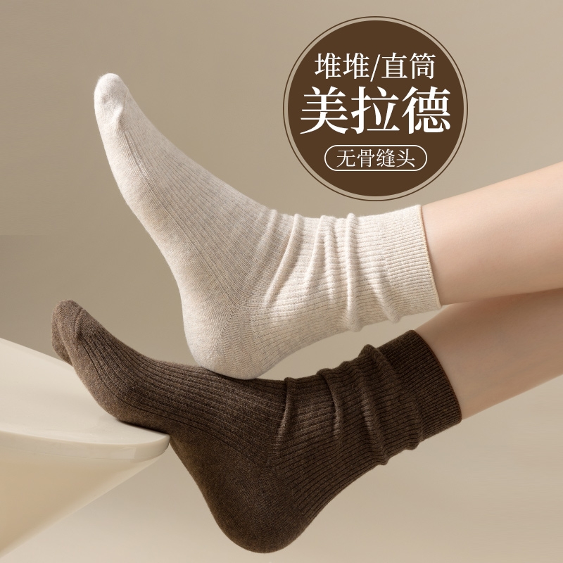 袜子女中筒袜春秋咖色美拉德堆堆袜纯棉秋冬小皮鞋勃肯鞋长袜黑色