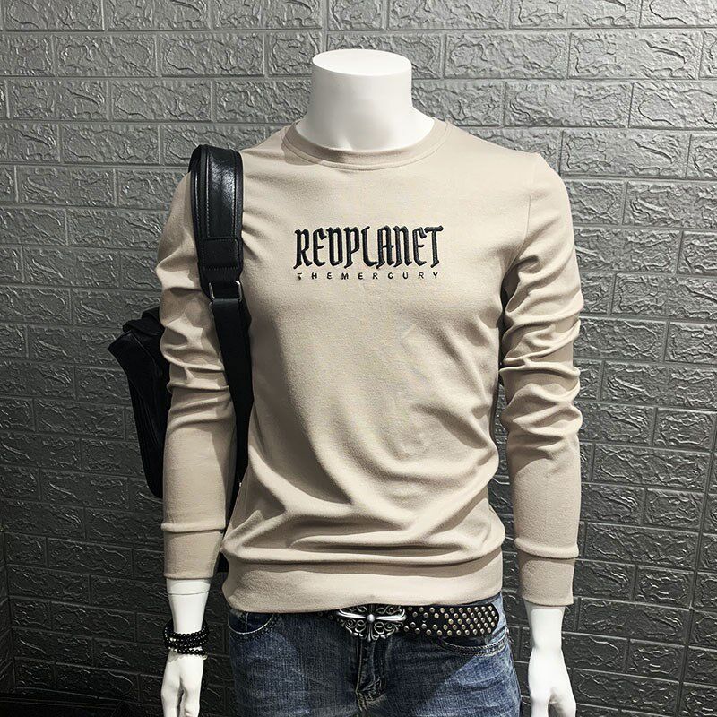 秋季卫衣男韩版潮青年圆领u日系修身长袖套头字母刺绣潮流外套男