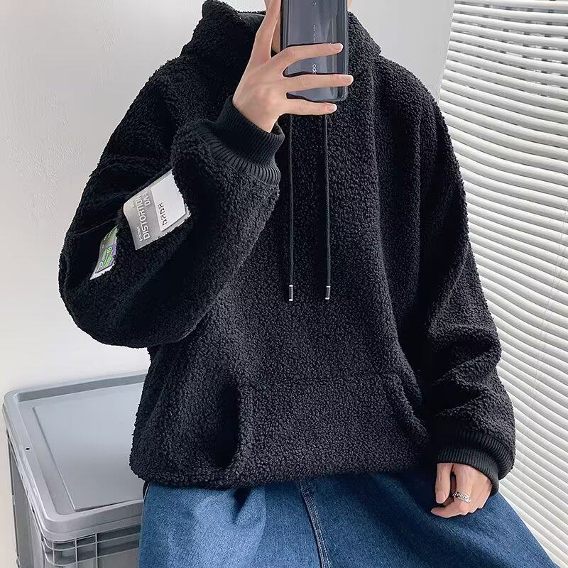 加绒卫衣休闲羊羔毛秋冬装加厚保暖外套潮流韩版港风连帽套头衣衫