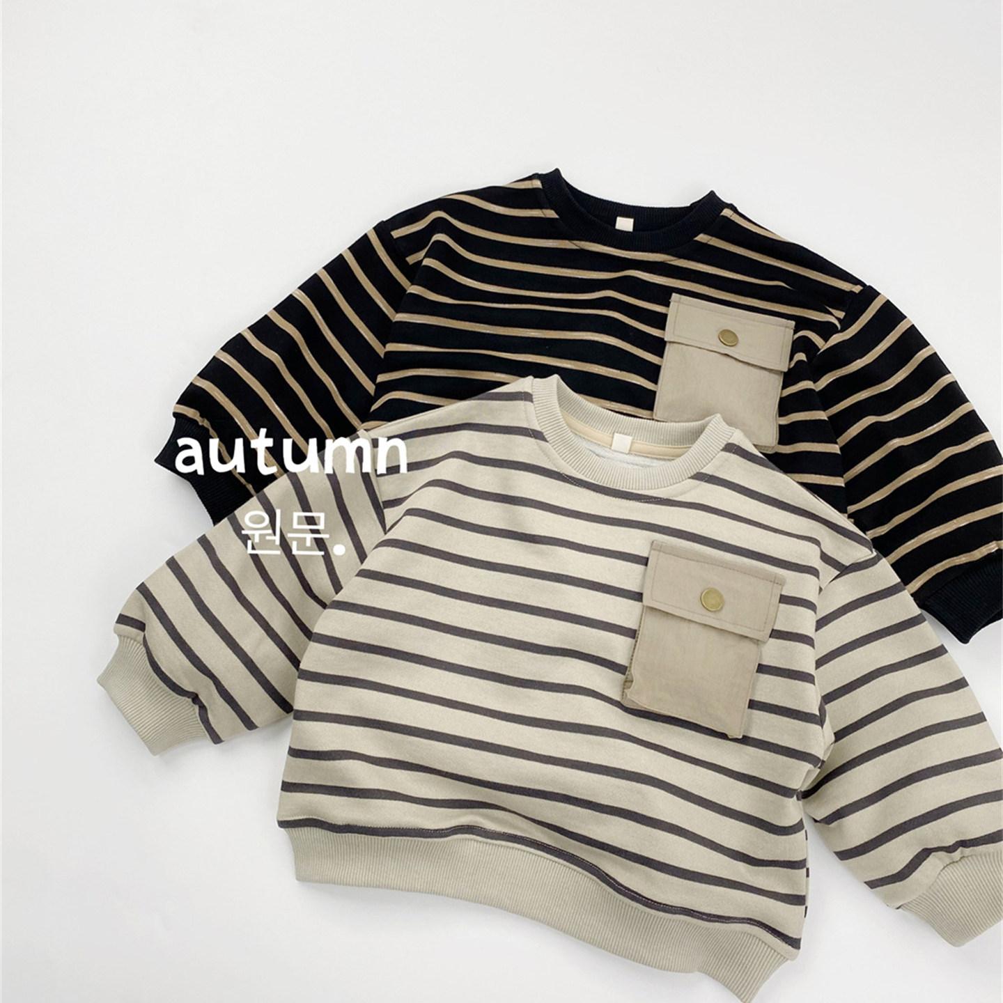 日系慵懒儿童条纹卫衣秋季新款男女童韩版落肩宽松上衣圆领套头衫