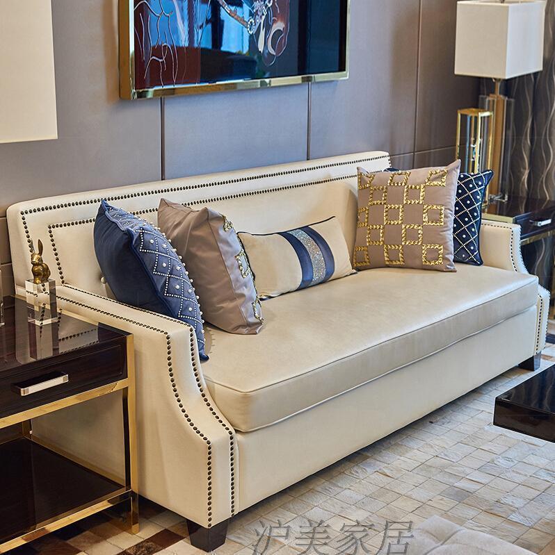 美式轻奢皮艺沙发小户型客厅简约现代单双三人样板间酒店沙发组合