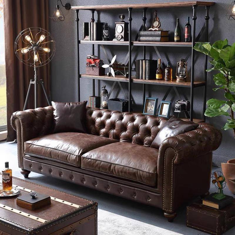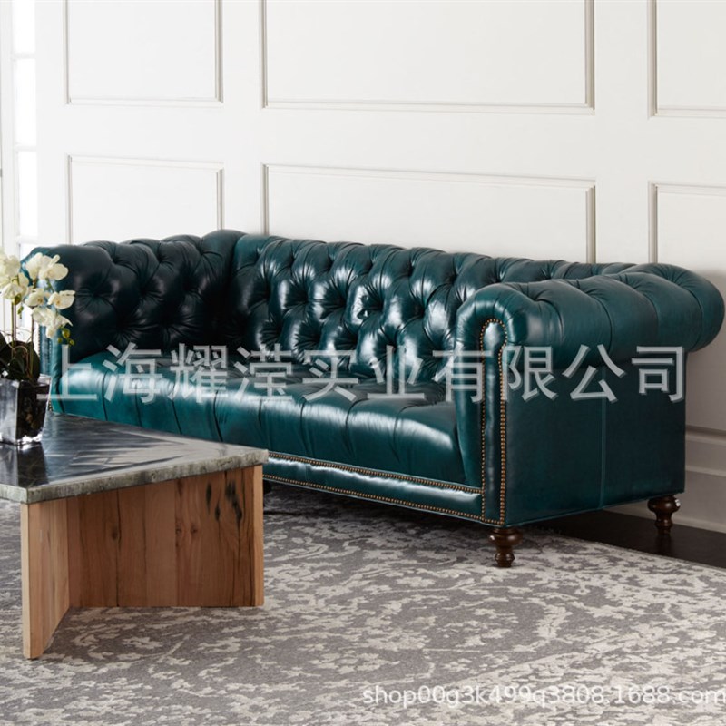 需定制实木美式复古皮艺拉扣沙发小户型皮革客厅四人座皮质沙发简