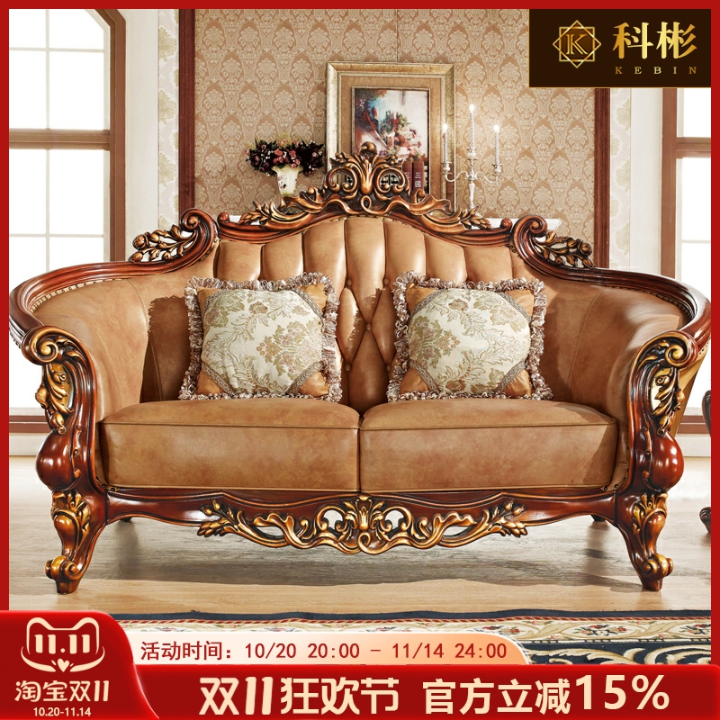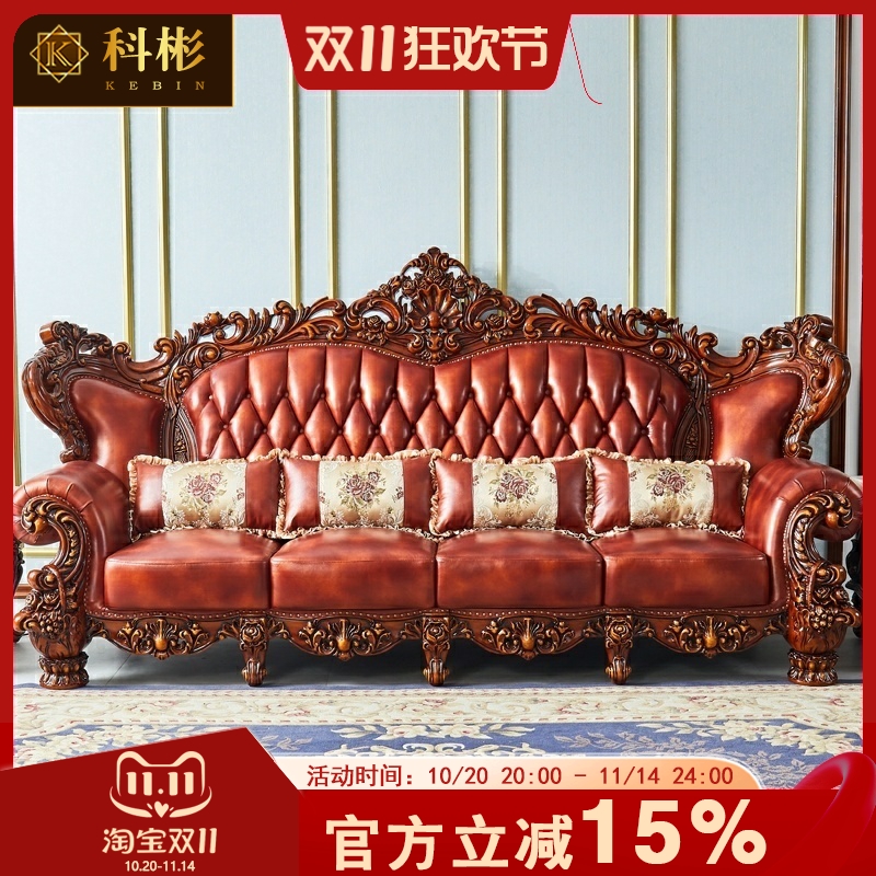 欧式实木皮艺沙发美式别墅客厅实木宫廷复古高档奢华法式家具沙发