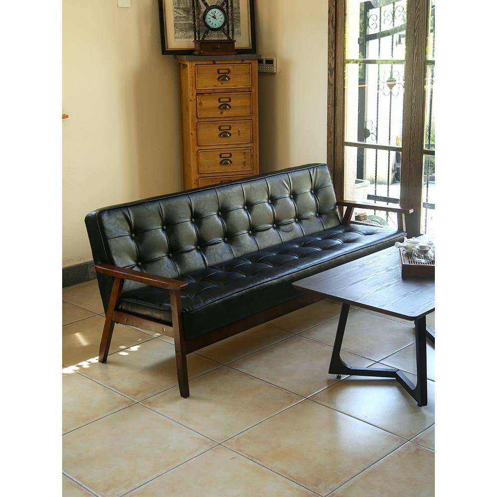复古美式皮艺沙发单人小户型出租房双人直排公寓服装店三人位卡座