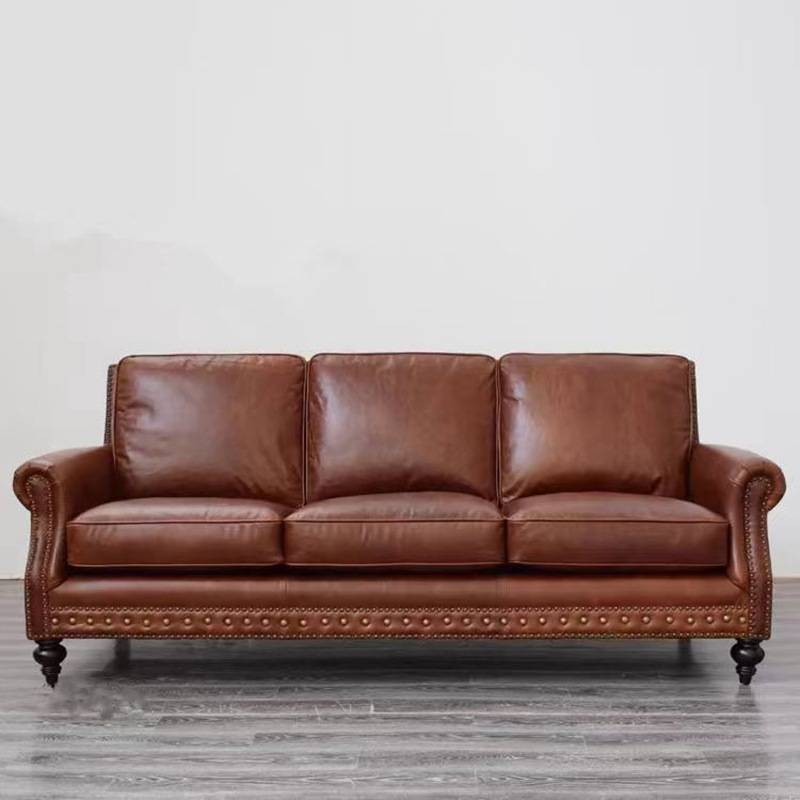 需定制美式复古皮艺拉扣沙发小户型复古客厅棕色油蜡皮牛皮三人别