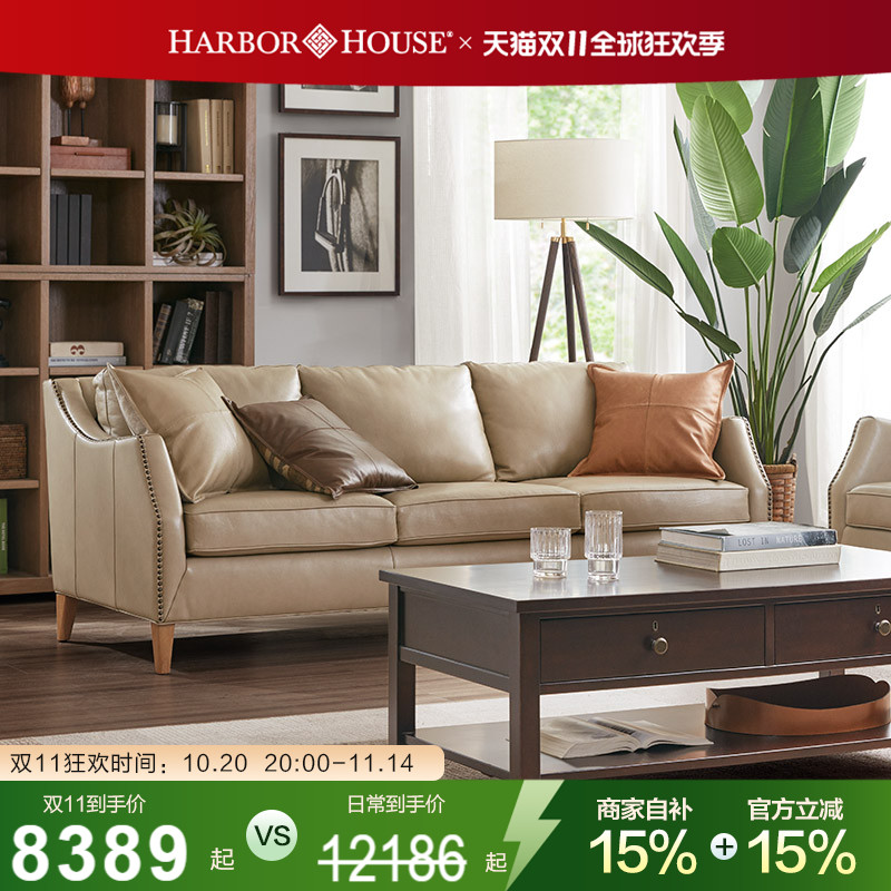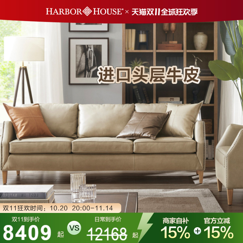 HarborHouse美式家具头层牛皮客厅现代真皮三人单人组合皮艺沙发