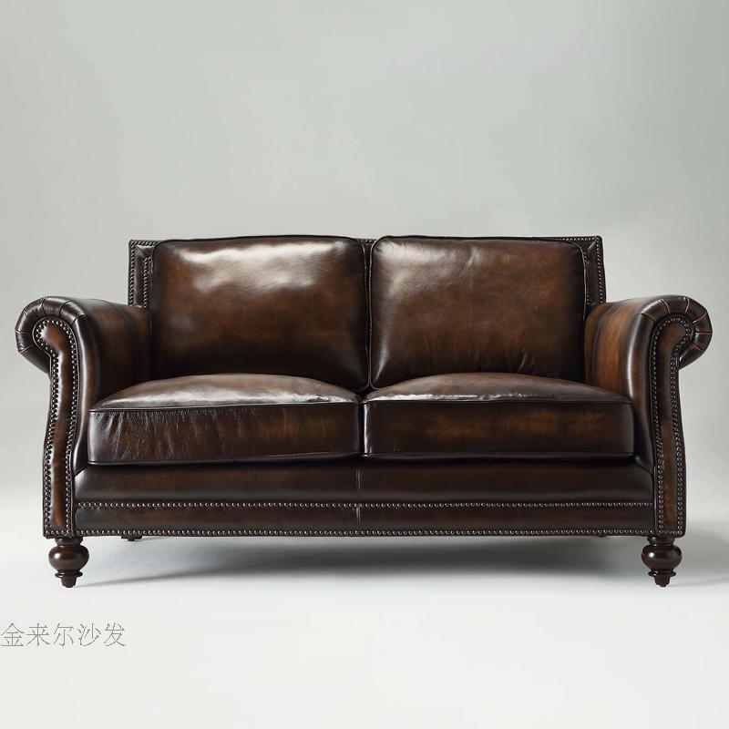 需定制美式复古真皮沙发 欧式皮艺单双三人沙发 客厅家具油蜡皮沙