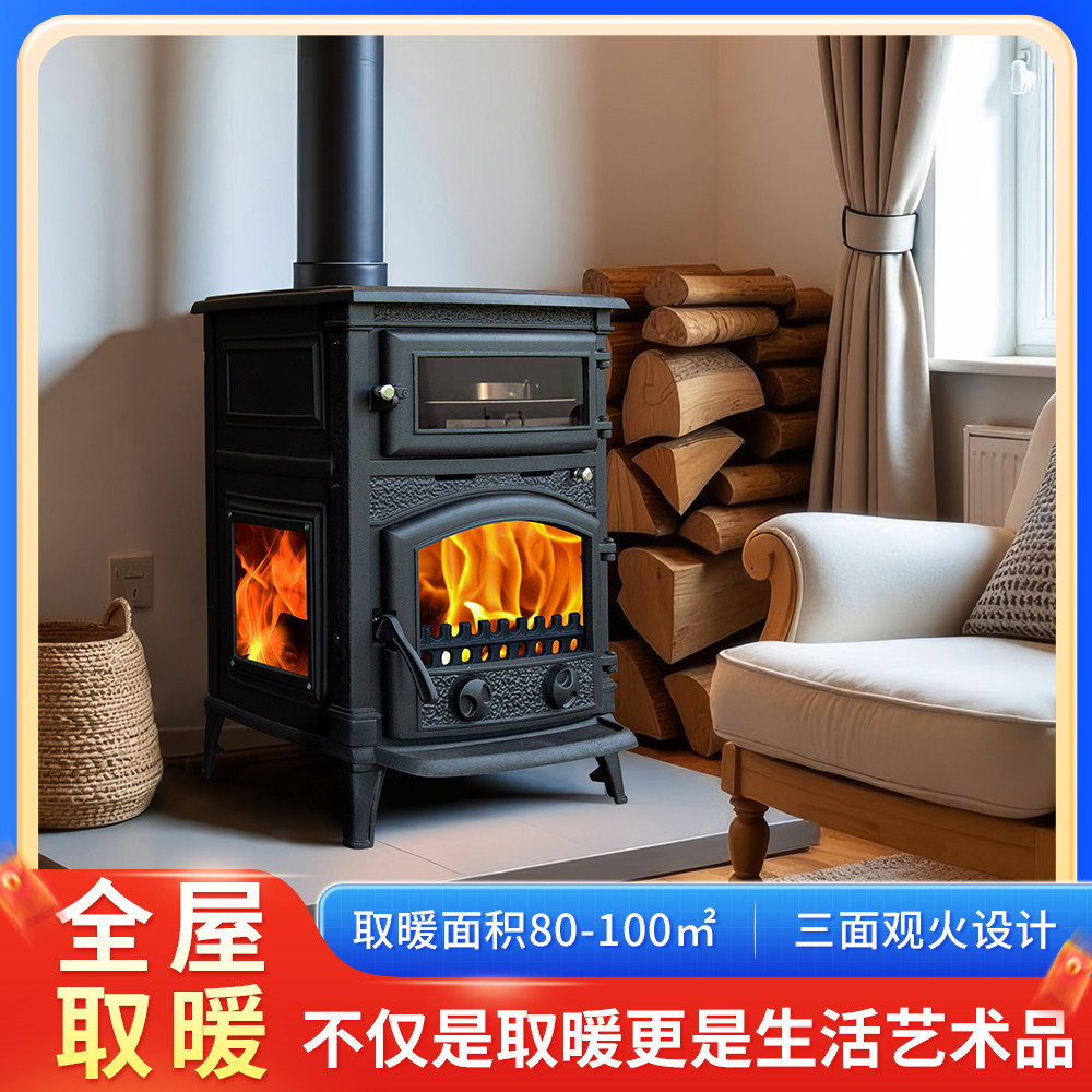 真火壁炉燃木柴火家用农村室内取暖炉复古欧式别墅民宿冬季柴火炉