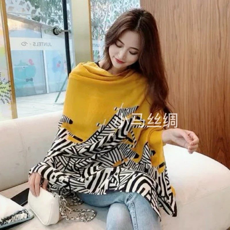 [黄色斑马]棉麻压皱质感四季款60*160左右四面弹力长巾披肩围巾