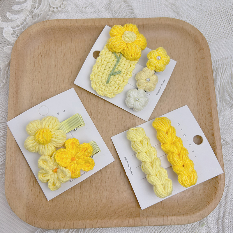 清越I纯手工钩织发夹bb夹黄色泡芙花鸭嘴夹可爱少女花朵发卡头饰