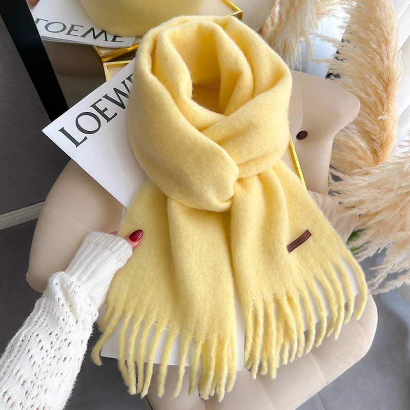 定制款~韩国东大门纯羊毛流苏围巾女秋冬高级感淡黄色围脖披肩ins