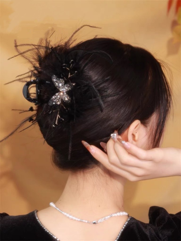 高级感轻奢法式黑色羽毛抓夹女2024秋冬新款后脑勺显发量鲨鱼夹子