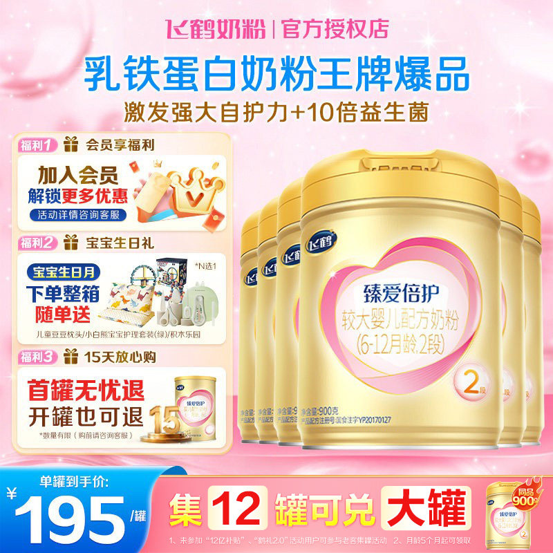 飞鹤臻爱倍护2段超级飞帆900g6罐乳铁蛋白婴儿牛奶粉二段旗舰店