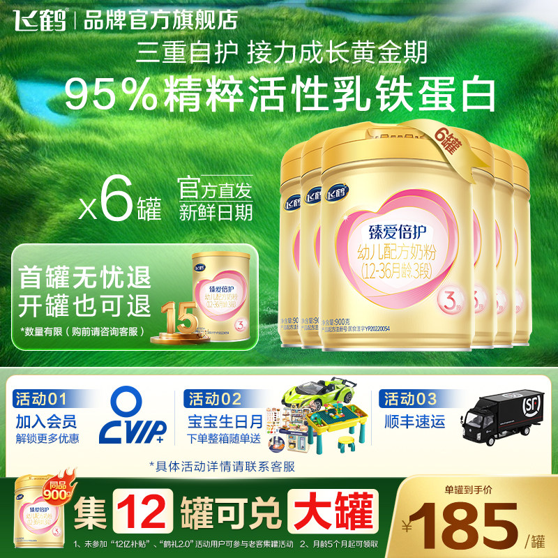 入会送好礼】飞鹤臻爱倍护3段超级飞帆900g6罐婴儿牛奶粉官方