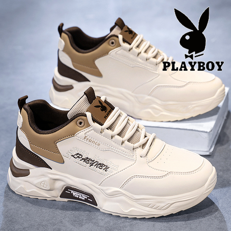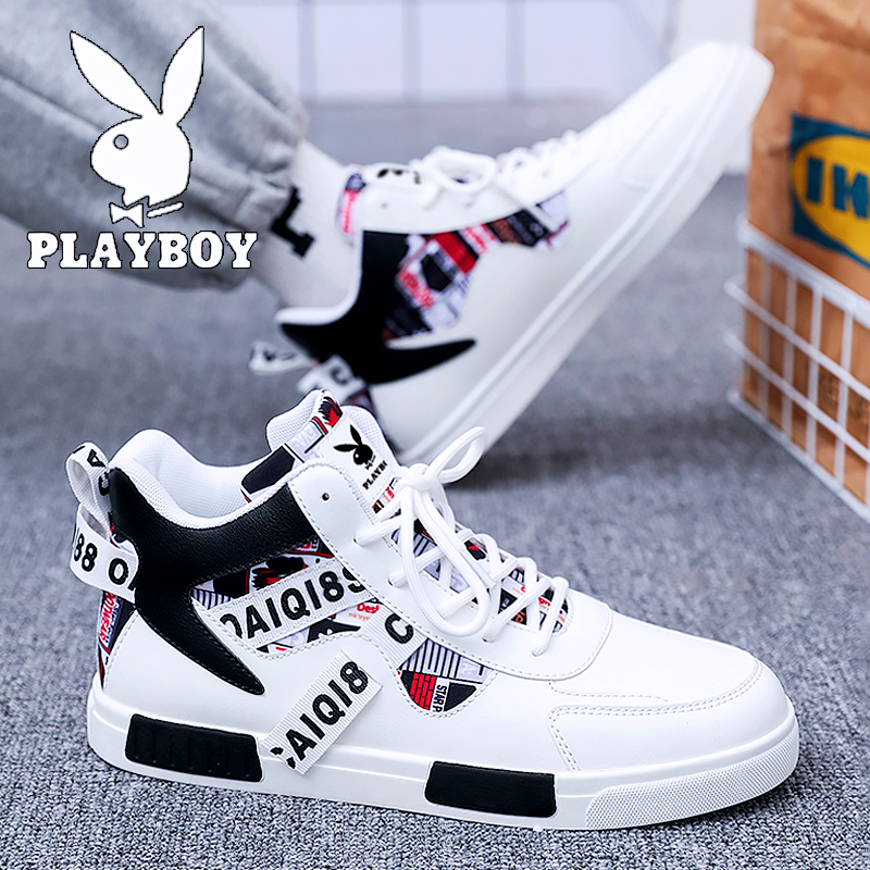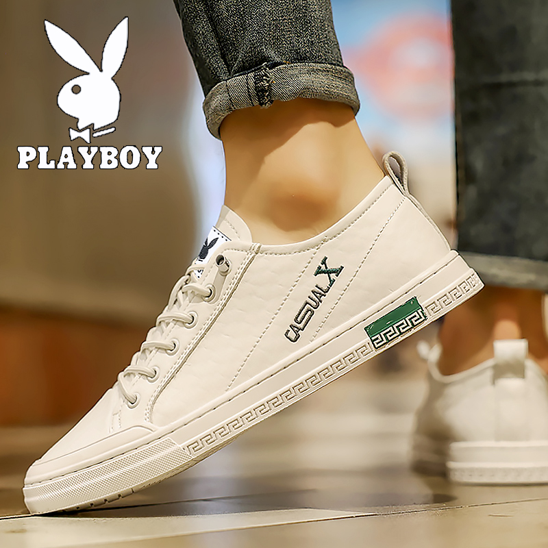 花花公子鞋子男款秋冬青少年小众设计学生爆款皮面板鞋运动小白鞋