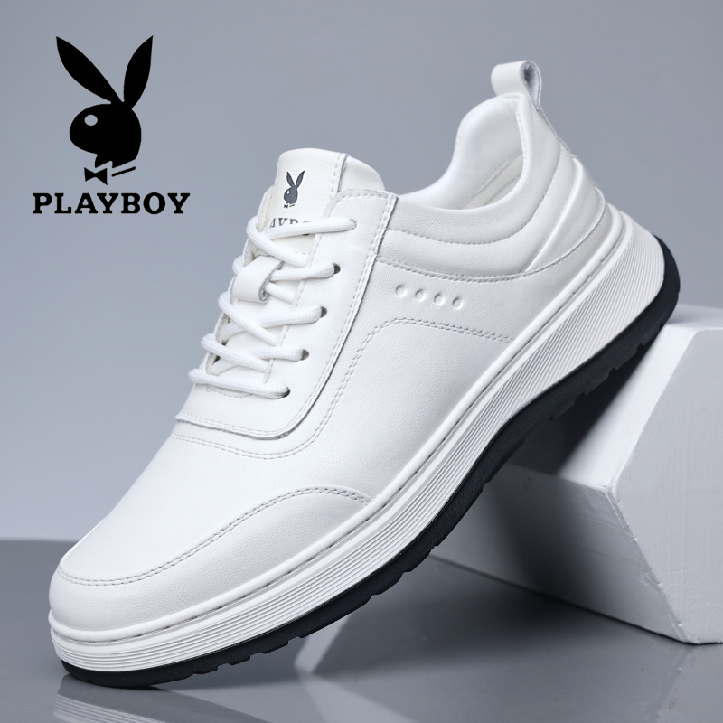 花花公子男鞋板鞋真皮防滑小白鞋男款休闲鞋子轻便厚底百搭运动鞋