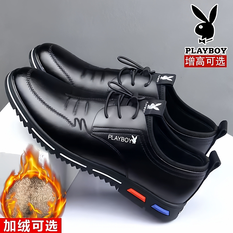花花公子男鞋2025秋冬新款男士加绒皮鞋百搭软皮真皮透气休闲鞋子