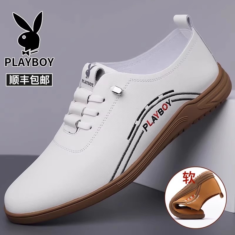花花公子男鞋2025秋季新款男士休闲皮鞋真皮透气软底防滑开车鞋子