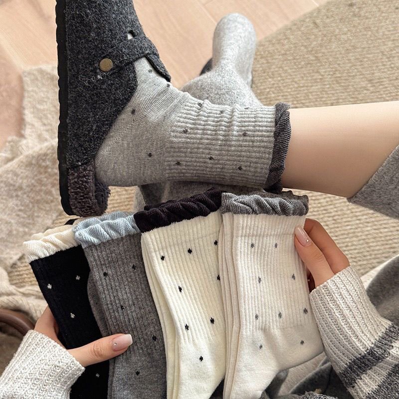 袜子女春秋点点韩系温柔花边百搭长中筒波点复古多巴胺学生堆堆袜